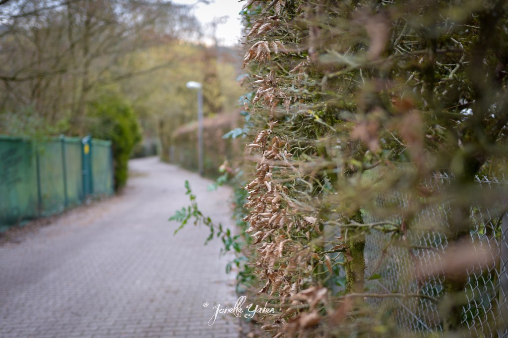 I love all the Hornbeam hedges around here. This was was planted to hide the chain-link fence which borders a local rehab hospital. Hornbeams can be shaped into all sorts of designs like a Yew or cedar topiary of formal gardens. This path is the one I take on my walk down to the city. I cannot wait for spring to see this hedge green again.