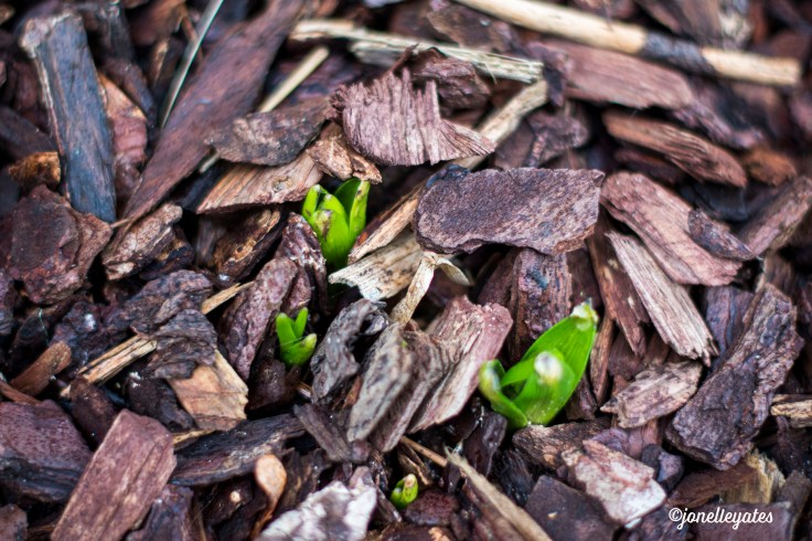 Hope is hard word for me. I cannot say it without tears falling. I know that hope in heaven is really the only thing I can count on. But like this plant, and I don’t know exactly what it is, I have to push through the dirt and mulch to see light. The dirt and the mulch are the things thrown at us to keep us from fixing our eyes on heaven. And for some, the dirt is deep and the mulch is packed hard. But we keep on looking to the author and protector of our Faith. He will bring us through so we can bloom and thank him for that journey.