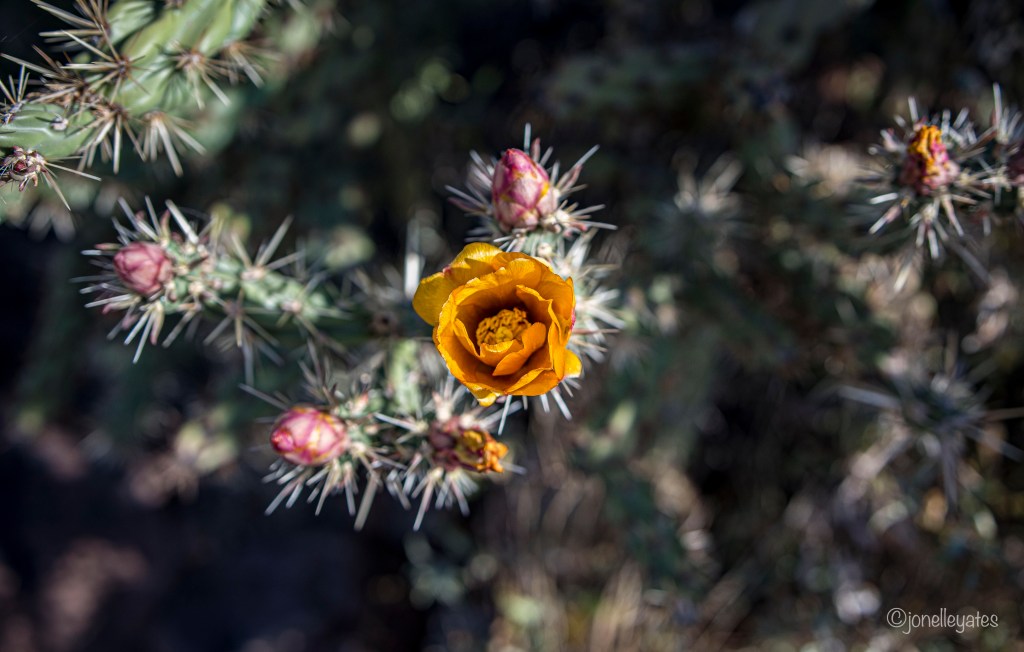 I walked up to the top of the hill again on Wednesday and even though I took a ton of pictures, this is the one that was the best. This delicate flower on this scary cactus was so striking.
