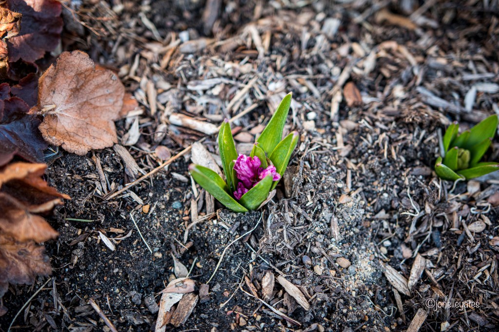 It was so cold in Chicago when we left. The wind was biting and it was frigid, though the sun was shining. This little hyacinth was using up all of his energy to poke through and then he decided that it was time to bloom. A little early, but early colour is never wasted.