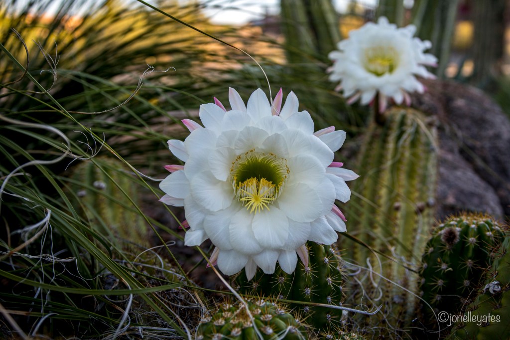 I had been watching the flower buds on these cacti for days, praying that I would be able to catch their flowers, never realizing how amazing they are. On Instagram I said that the cactus had put on their prom dresses and truly they are gorgeous. They are about 4 inches across.