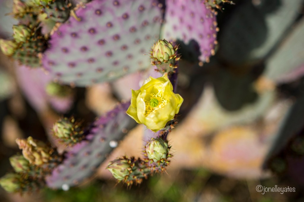 Until I moved here, I didn’t know there were different types of Prickly Pear Cactus. I love this purple one because unlike the other flowers which are bright yellow, the flowers are a gentle butter yellow.
