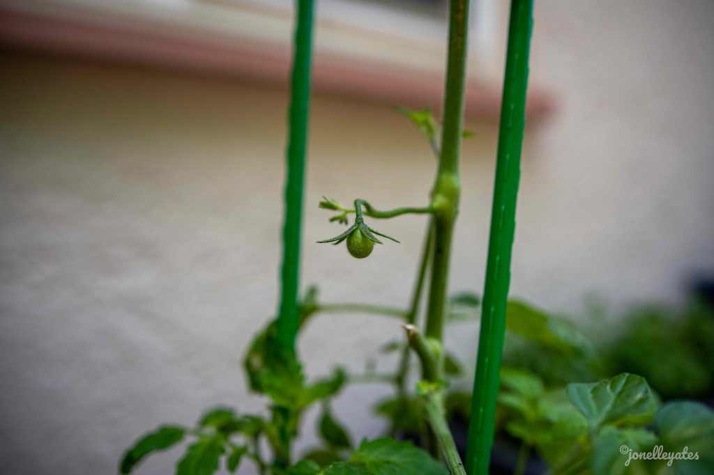 My tomatoes blossomed and started producing tomatoes while were gone as well. They also were damanged by maintenance people cleaning out the gutters, but a trim up and a move to a sunnier spot should make them bounce back quickly.