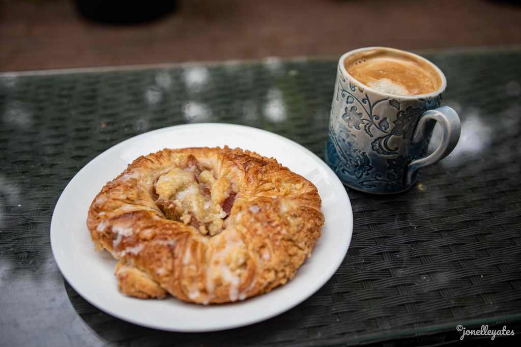 On Saturdays we walk down to the bakery. It’s summer-time now so more fruit is showing up in the pastries they make. This piece of art contained Rhubarb and it was so yummy.