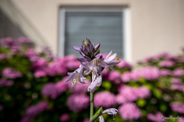 My father has grown hundreds of varieties of hostas. He normally cuts the flower stems off the plants, but my neighbour and I both left this beautiful purple flower on.