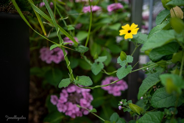 My Black-eyed Susan vine, somehow caught my tall grass and started wrapping itself around it. I have no idea how it jumped there, but God’s creation always loves to surprise us.