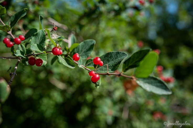 Red berries in the midst of a sea of green. The Prairie Path is a wonder of plants and now, in mid-summer, it is very very green. These red berries caught my eye on Friday.