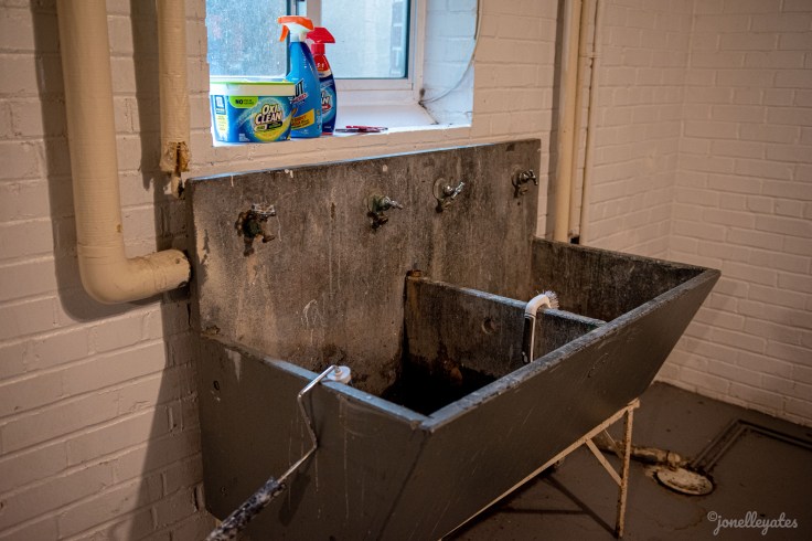 I’ve never had a utility sink such as this. In Germany we had a utility sink but it was the size of a small plate, super shallow and the spigots were so high from the sink, the water just splashed. This is a utility sink. I don’t know how old it is and my friend asked if it was soapstone, which I believe it is. It is awesome for cleaning paint brushes. I just need to find some mixer hoses so that I don’t scald my hands on the hot side and freeze them on the cold side.